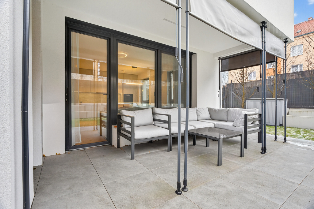 Apartament jest w pełni umeblowany – całe wyposażenie widoczne na zdjęciach pozostaje do dyspozycji Najemcy. Dodatkowym atutem apartamentu jest zainstalowana klimatyzacja zapewniająca komfort przez cały rok oraz zewnętrzne żaluzje sterowane centralnie, które zwiększają prywatność i pozwalają precyzyjnie regulować nasłonecznienie wnętrz.