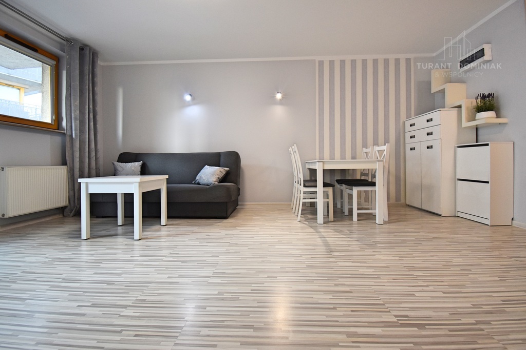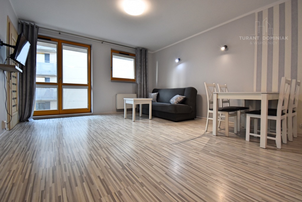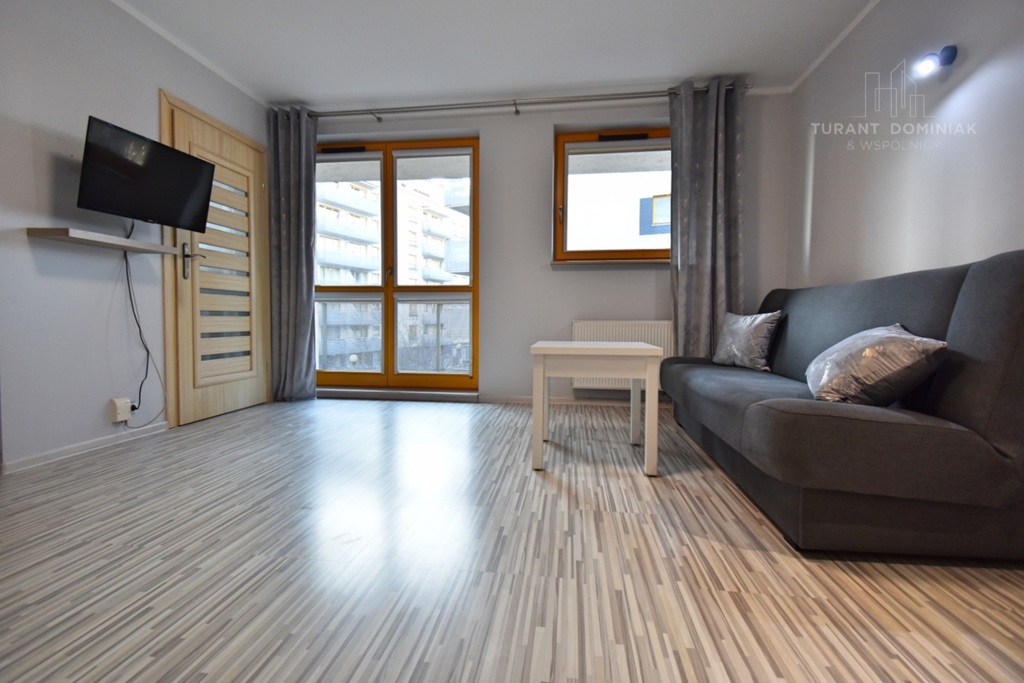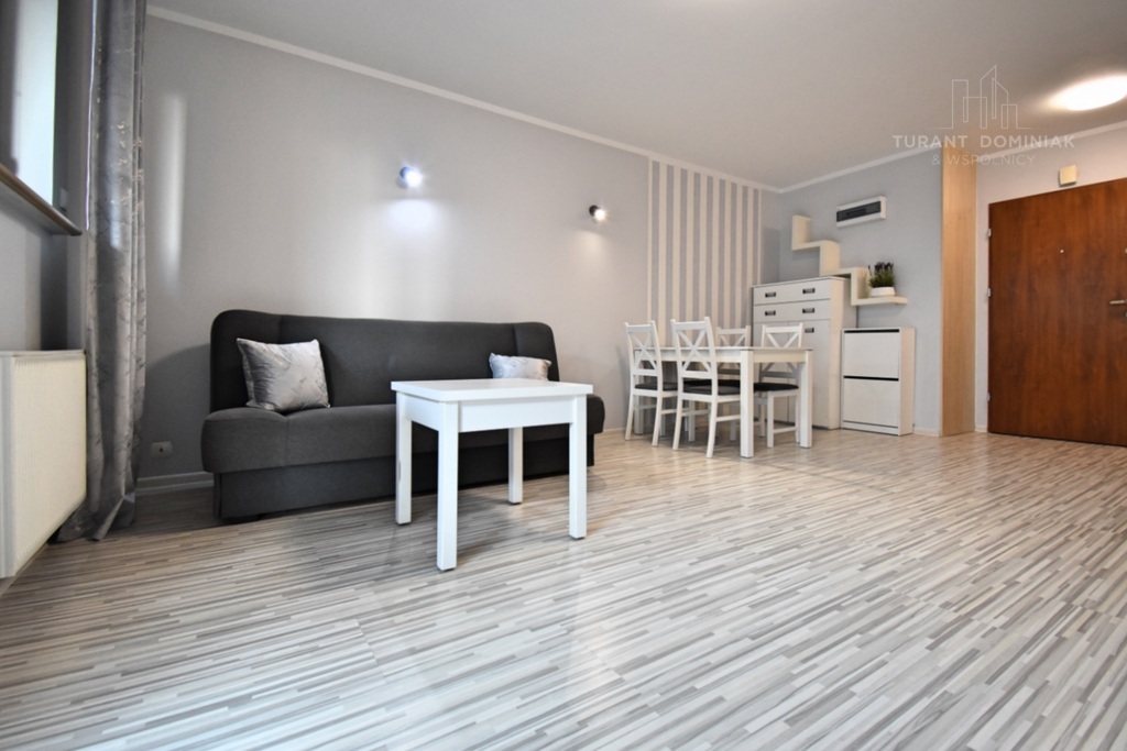 Nowoczesne dwupokojowe mieszkanie z balkonem, w pełni umeblowane i wyposażone, Szczecin – Pomorzany (Os. Polonia). Budynek, w którym znajduję się lokal mieszkalny jest czteropiętrowy i został oddany do użytku w 2011 roku. Posiada cichobieżną windę, kontrolę dostępu, indywidualne garaże pod budynkiem oraz ogólnodostępne miejsca parkingowe na Osiedlu Polonia. Mieszkanie o powierzchni 39,45 m2 mieści się na II piętrze, a ekspozycja jego okien jest od strony południowej. Ściany są gładkie i malowane, na podłodze znajdują się panele. Lokal jest w pełni umeblowany i wyposażony. Kuchnia w zabudowie mebli ze sprzętem AGD tj. lodówka z zamrażalką, piekarnik, zmywarka, płyta grzewcza indukcyjna, mikrofala i okap. Łazienka w glazurze i terakocie wraz z wanną, wc, umywalką i pralką. Całe widoczne umeblowanie i wyposażenie na zdjęciach pozostaje w wynajmowanym lokalu. Ogrzewanie i ciepła woda użytkowa z sieci miejskiej. Dodatkowe koszty eksploatacyjne to czynsz do wspólnoty mieszkaniowej w wysokości 538,44 zł zł (zawiera już zaliczkę na ogrzewanie, zaliczkę na ciepłą i zimną wodę, wywóz nieczystości, opłaty administracyjne, części wspólne, fundusz remontowy) oraz energia elektryczna według indywidualnego zużycia. Wymagana kaucja w wysokości 4000 zł oraz umowa najmu okazjonalnego. Mile widziane pary, nieposiadające zwierząt i niepalące. W bliskiej odległości znajduje się Pomorski Uniwersytet Medyczny, centra handlowe, kluby fitness, pływalnia, restauracje, przystanki komunikacji miejskiej, a centrum miasta Szczecin oddalone jest zaledwie 3 km. Mieszkanie dostępne od zaraz, zapraszam na prezentację.